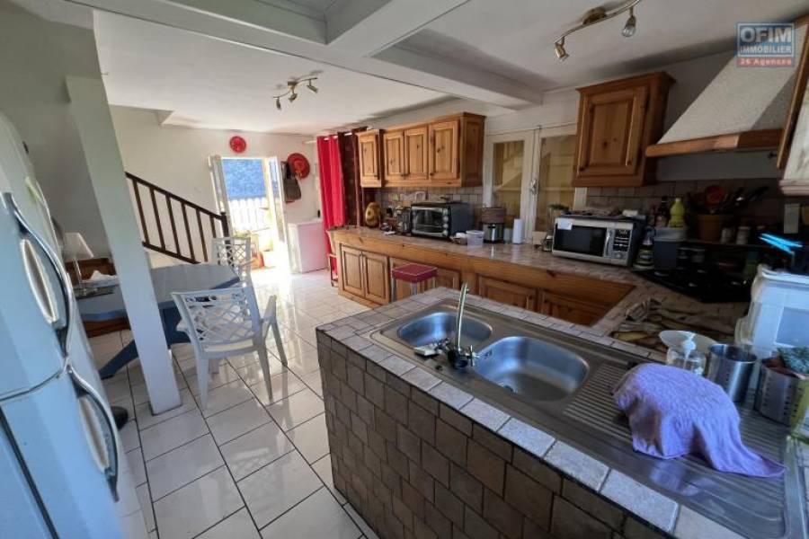 L'agence OFIM d'Etang Salé vous propose à la vente cette maison de ville (sans jardin) F5 en R+1 de 147 m2 utiles et 125 m2 habitables, implantée sur 137 m2 de terrain avec un garage fermé et une magnifique vue mer imprenable. La maison se compose au RDC d'un garage de 16 m2 accédant à une chambre de 14,25 m2, un couloir menant à toutes les pièces dont un bureau/chambre/dressing de 9,86 m2 tout en longueur de 1,88m de large, une salle de bains de 6 m2, des WC de 3 m2, un séjour de 22 m2, une cuisine toute équipée de 23,50 m2, une courette coté route fermée de 1 m sur 3m, un escalier menant à l'étage avec deux chambres sous combles de 26 et 11,70 m2, ainsi qu'une varangue de 16 m2 avec vue mer et montagne imprenable, à 200 m d'altitude en bordure de la route des Canots. La maison a plus de 35 ans, elle a été révisée en partie récemment, notamment sols et plafonds, elle est reliée au tout à l'égout, il y a un chauffe eau électrique et la taxe foncière s'élève à 1661€. La commission d'agence est charge vendeur, pour tous renseignements ou visites, contactez François HART (Agent commercial) [coordonnées réservées] ou [coordonnées réservées] Honoraires à la charge du vendeur 8A69469, Numéro de mandat: 2275ESH Tél. commercial: [coordonnées réservées]