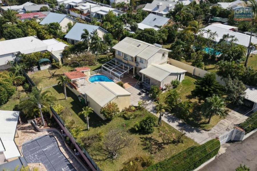 Belle propriété F5/6 avec garages et piscine, idéalement située en hyper centre d'Etang Salé Les Hauts, en impasse, implantée sur un terrain plat de 1515 m² sans vis à vis.