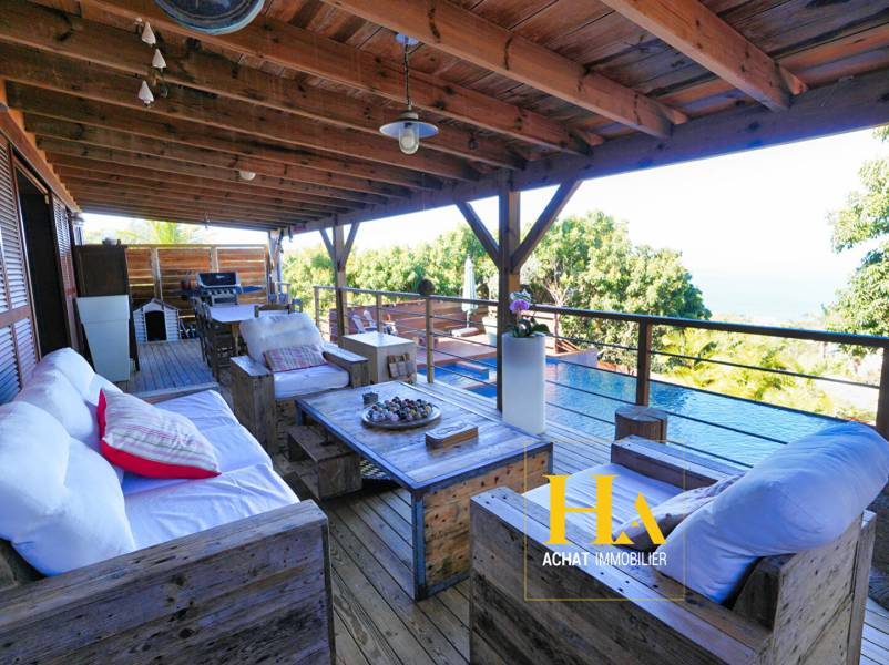 Laissez-vous séduire par cette superbe villa de 223 m² habitables, édifiée en 2006 sur un terrain de 1 285 m². Ici, calme et panorama d'exception sur l'océan se conjuguent pour offrir un cadre de vie unique. Au rez-de-chaussée, vous trouverez un vaste séjour de plus de 45 m², un bureau parfait pour travailler depuis chez soi, une cuisine aménagée avec cellier, un WC séparé, ainsi qu'une grande varangue de 40 m² ouverte sur la piscine à débordement et la vue mer. A l'étage, quatre chambres, dont une suite parentale avec salle de bain (douche + baignoire), deux salles d'eau avec douche à l'italienne et une terrasse permettant de profiter pleinement de la vue. En annexe, un F2 bis indépendant, idéal pour de la location saisonnière ou recevoir vos proches, comprenant : séjour avec coin cuisine, chambre, alcôve avec lits superposés, salle d'eau et WC séparé. A l'extérieur, profitez d'un bel espace piscine avec vue dégagée sur l'océan, d'un jardin arboré en contrebas, de coins ombragés propices à la détente, ainsi qu'un garage/atelier de 45 m² et de nombreuses places de stationnement. Assainissement autonome déjà en place. Un bien rare, spacieux et baigné de lumière, à découvrir sans tarder pour les amoureux de la tranquillité et des beaux volumes. Contacts: Kevin Creurer [coordonnées réservées] | [coordonnées réservées] RSAC de St Pierre: 941 169 724 Anthony Praud [coordonnées réservées] | [coordonnées réservées] RSAC de St Pierre: 501 079 859 Bien non soumis au DPE Les informations sur les risques naturels auxquels ce bien peut être exposé sont disponibles sur le site: www.georisques.gouv.fr Kévin CREURER (EI) Agent Commercial - Numéro RSAC : 941169724 - SAINT PIERRE.