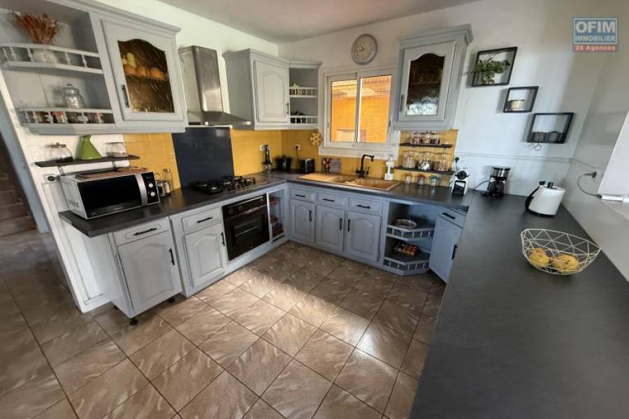 L'agence OFIM vous présente cette magnifique propriété, idéalement située dans le secteur prisé de la Ravine Sèche aux Avirons. Offrant une vue imprenable sur l'océan et la montagne, cette maison de 180 m² habitables et près de 300 m² de surface utile est un véritable havre de paix, parfait pour une grande famille. Caractéristiques de la maison : - Type : F5+ en R+1 - Surface habitable : 180 m² - Garage : 48 m² - Varangues : 44 m² ouvertes à l'étage et 47 m² fermées au rez-de-chaussée - Terrain : 440 m², arboré et fleuri - Piscine au sel Composition : Au Rez-de-Chaussée : - 1 petite chambre avec placard (8/9 m²) - 1 séjour lumineux de 25 m² - 1 salon convivial de 14 m² - 1 grande cuisine ouverte de 10,35 m², avec divers accès intérieur. - 1 WC avec évier - 3 varangues fermées pour des moments de détente À l'Étage : - 3 spacieuses chambres d'environ 14 m², bien ventilées - 1 salle d'eau de 10 m² - 1 WC séparé - 1 petit dressing fonctionnel - 2 grandes varangues/terrasses ouvertes offrant une vue panoramique sur l'océan Cette maison est en excellent état grâce à un entretien rigoureux et des améliorations apportées au fil des années. La combinaison de la vue sur l'océan, les montagnes, le jardin verdoyant, la piscine, ainsi que l'altitude de 350 m qui assure un climat tempéré tout au long de l'année, garantit une qualité de vie exceptionnelle. Idéalement située entre Les Avirons et Étang Salé Les Hauts, en bordure et en surplomb de route de la Ravine Sèche, la propriété est facilement accessible et bien desservie, offrant un cadre de vie paisible tout en restant relativement proche des commodités. Détails supplémentaires : - Places de stationnement intérieur - BBQ en pierre - Portail électrique - Chauffe-eau solaire - Taxe foncière : 2233 € Commission d'agence : À la charge du vendeur. Pour plus d'informations ou pour planifier une visite, n'hésitez pas à contacter François HART (agent commercial) au [coordonnées réservées] ou par email à [coordonnées réservées] Honoraires à la charge du vendeur 8A71219, Numéro de mandat: 2317ESH Tél. commercial: [coordonnées réservées]