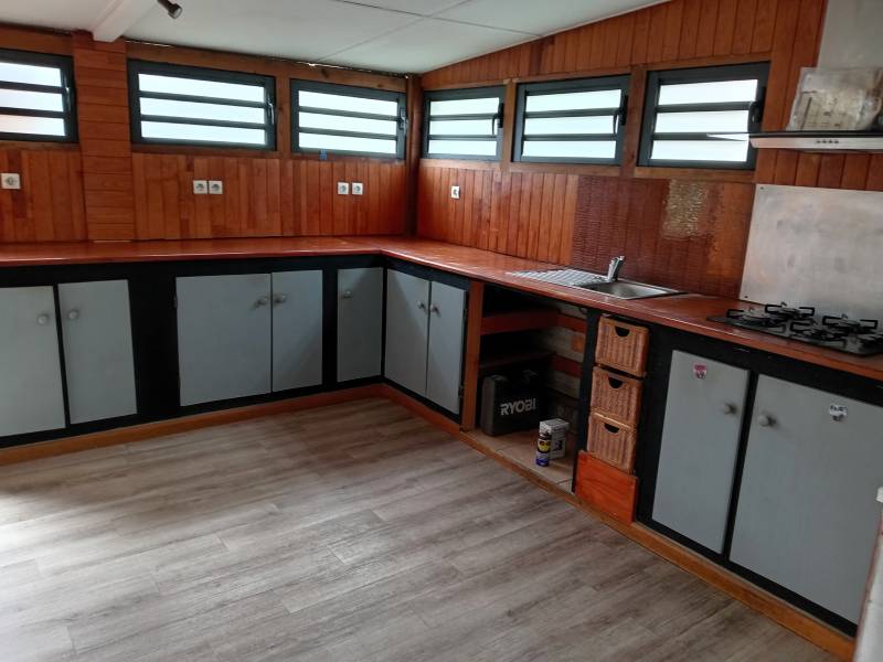Maison d'environ 120 m², nécessitant des rafraichissements, avec 2 jardins composée d'une cuisine/buanderie, d'un salon, de 3 chambres climatisées, d'une véranda avec petite vue mer, d'une étage en sous pente.