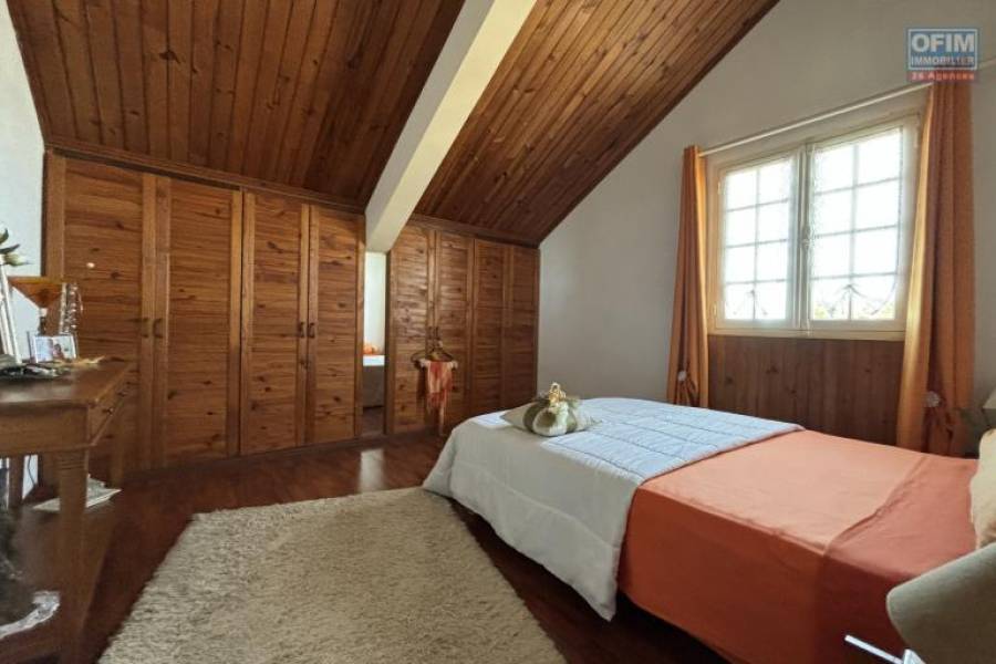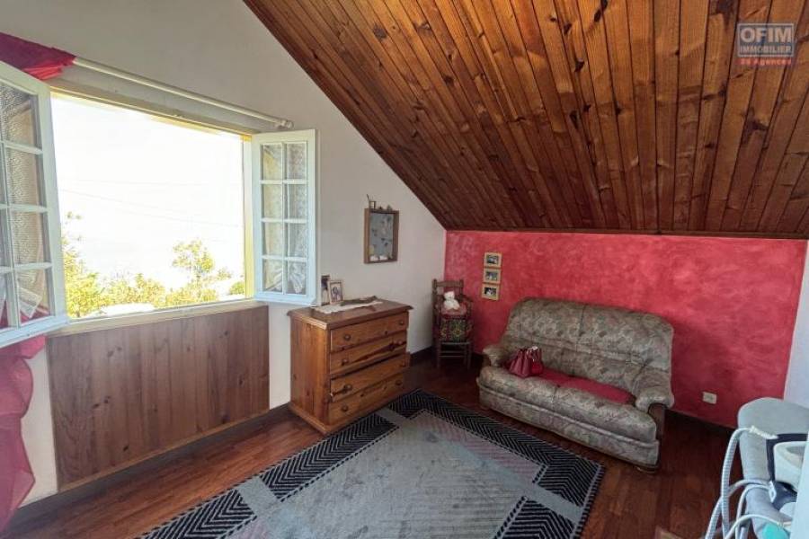 OFIM Saint-leu vous propose une belle maison de 97 m2 habitables datant de 1984 en parfait état. Le rez de chaussée s'ouvre sur un grand salon avec cheminée de 30 m2 avec poutres et plafond en bois massif. La cuisine fermée de 8,60 m2 est entièrement équipée. La salle de bains est agencée avec des placards fermés en bois massif et possède un sèche-serviettes électrique. Le coin nuit se situe à l'étage et comprend 4 chambres mansardées hautes sous plafond dont 2 grandes de 12,60 m2 avec placards, une de 12 m2 et une autre de 10 m2. Une magnifique vue mer imprenable s'offre à vous. La véranda de 20 m2 est attenante à un splendide mur entièrement végétalisé. Une buanderie de plus de plus de 6 m2 renferme un chauffe-eau solaire récent ainsi qu'un ballon d'eau chaude électrique ce qui permet de basculer de l'un à l'autre rapidement. Une dépendance de 16 m2 peut être aménagée en bungalow indépendant. Le jardin de 431 m2 possède de belles espèces végétales dont citronnier et goyavier. Possibilité d'aménager un solarium accessible à l'arrière par des escaliers. Taxe foncière : 1681,00€ Altitude : 850 mètres Fosse septique et bac à graisse. Pour tout renseignement contactez Annick Edwards au [coordonnées réservées] Honoraires à la charge du vendeur 6A69721, Numéro de mandat: 1579SL Tél. commercial: [coordonnées réservées]
