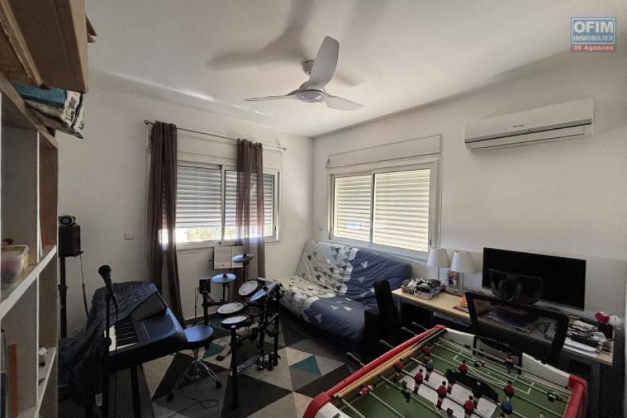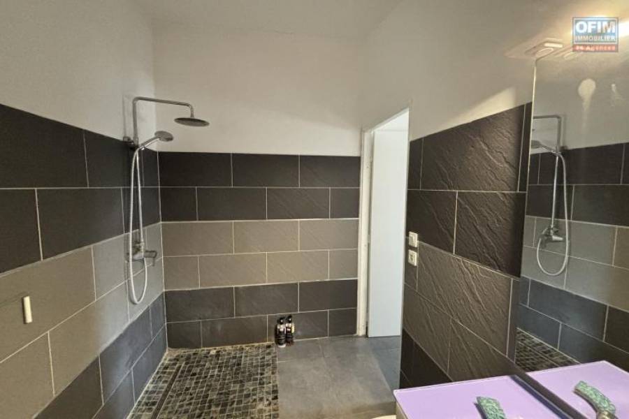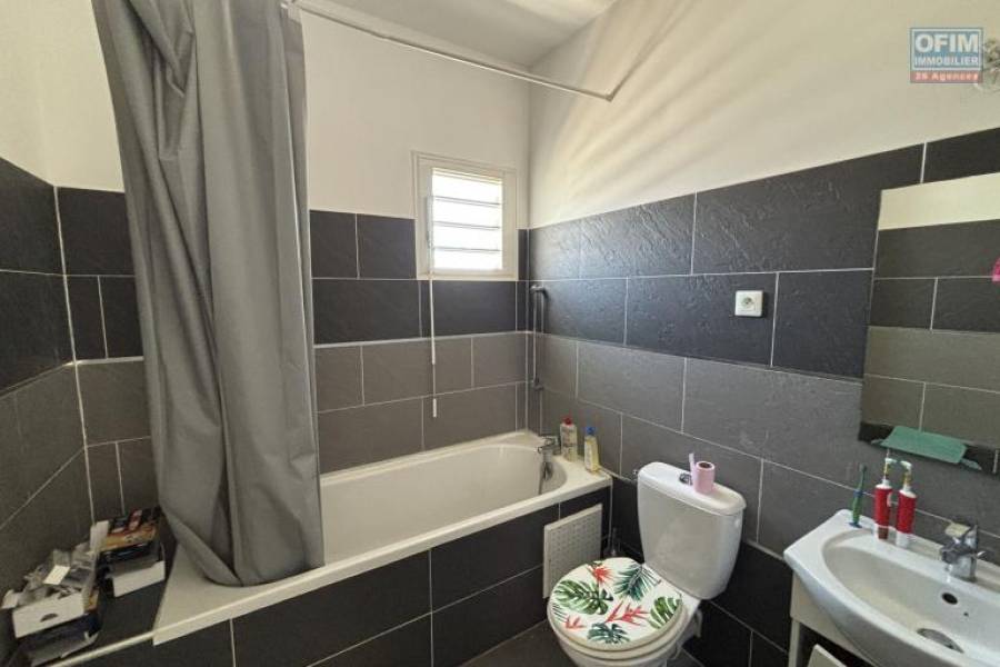 OFIM Saint-Leu vous propose à la vente une charmante villa en R+1 de 78 m2 implantée sur une terrain de 146 m2 à 240 mètres d'altitude. Cette maison située à 7 minutes du centre ville de Saint-Leu se compose au rez-de-chaussée d'un salon/cuisine avec brasseur d'air de 32 m2 ouvert sur une petite terrasse, une buanderie, une suite parentale comprenant une chambre climatisée équipée de brasseur d'air de 13 m2 avec placards et salle d'eau attenante avec douche à l'italienne et WC. A l'étage se trouvent deux chambres climatisées de 10 et 13 m2 avec placards et un salle de bains avec WC d'environ 5 m2. La maison est équipée d'un portail électrique et d'un interphone. Chauffe-eau solaire Fosse septique. Taxe foncière 1400 € Loué 832,00 € jusqu'en juin 2027 Pour tout renseignement contactez Annick Edwards au [coordonnées réservées] Honoraires à la charge du vendeur 6A71533, Numéro de mandat: 1588SL Tél. commercial: [coordonnées réservées]