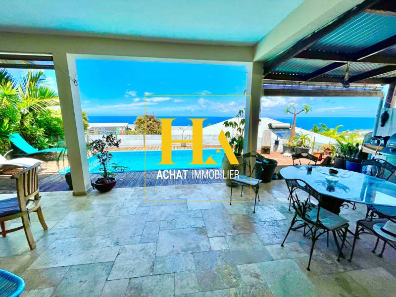 Ha Immobilier vous propose à la vente cette villa T5 de 195,5 m² (147,6 m² habitables) avec VUE MER PANORAMIQUE, située à Grand-Bois, à seulement 60 mètres d'altitude. Construite en 2015 avec des matériaux de qualité, elle offre un excellent confort de vie et se trouve en parfait état. Au rez-de-chaussée, vous découvrirez un espace convivial et lumineux comprenant un spacieux salon de 40 m², une cuisine équipée et aménagée dont le plan de travail et la crédence en quartz ont été changés il y a moins d'un an, ainsi qu'une salle d'eau et une chambre. A l'étage, en plus de deux chambres spacieuses avec vue mer, vous profiterez d'une nouvelle salle d'eau et d'une terrasse offrant une vue panoramique sur tout Grand-Bois jusqu'à Terre-Sainte. En excellent état, la maison ne nécessite aucuns travaux. Sa construction récente garantit une bonne isolation et des finitions soignées. 4 places de parking sont disponibles, dont une couverte. A l'extérieur, son orientation sud-ouest permet de profiter d'une belle luminosité tout au long de la journée, ainsi que de splendides couchers de soleil et de l'observation des baleines. Atouts : En plus d'une dépendance autonome de 18 m², la maison dispose d'une large installation de panneaux photovoltaïques générant environ 1 000 euros par an, revendus directement à EDF. Elle possède également une borne de recharge pour voiture électrique, se situe proche des commodités et à seulement 3 minutes en voiture de l'hôpital de Terre-Sainte. Les informations sur les risques naturels auxquels ce bien peut être exposé sont disponibles sur le site: www.georisques.gouv.fr François GOYON Agent mandataire indépendant RSAC 891 040 545 (EI) Téléphone: [coordonnées réservées] E-mail : [coordonnées réservées] **Honoraires à la charge du vendeur François GOYON (EI) Agent Commercial - Numéro RSAC : 891040545 - SAINT PIERRE.