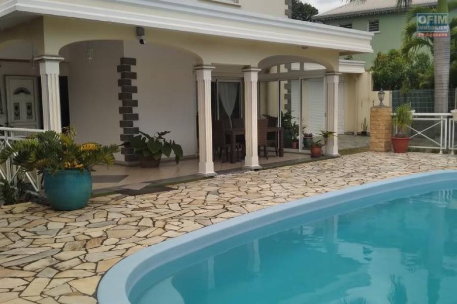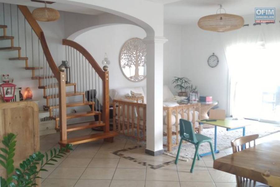 Cette belle villa duplex d'une surface habitable de 184 m2 se trouve dans un quartier résidentiel calme à 6 minutes de Saint Pierre sur une parcelle de 619 M2 clôturée. Elle est équipée d'un abri de jardin, d'un kiosque et d'une piscine au sel de 8m*4m. La villa se compose au rez-de-chaussé d'un séjour, d'une cuisine ouverte équipée, un bureau et une chambre, une buanderie et une grande véranda. A l'étage, trois chambres, salle de bain et wc. Commercial : ETHEVE Dominique : [coordonnées réservées] Honoraires à la charge du vendeur 10A70077, Numéro de mandat: SP 5496 Tél. commercial: [coordonnées réservées]