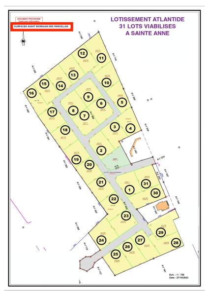 Devenez propriétaire du lot no01 , un beau terrain plat à bâtir viabilisé cadastrée AI 2420 sur la commune balnéaire et touristique de SAINTE-ANNE. La parcelle vous offre une surface de 529 m2 pour construire une villa neuve pour votre famille ou investir. Le prix de vente est fixé à 158 700 € ( Honoraires de 5% de l'agence inclus et à la charge du vendeur). La parcelle est intégrée dans le projet du lotissement ATLANTIDE. Actuellement sur la commune de SAINTE-ANNE il n'y a pas de PLU . En principe il devrait voir le jour pour le mois de Mai 2024. En attendant, la réglementation applicable est le RNU (règlement national d'urbanisme).
