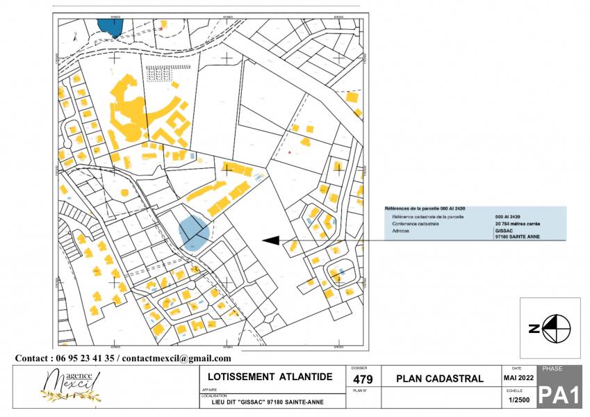 L'Agence MEXCIL accompagne le maître d'ouvrage dans le cadre de l'acquisition du lot no19 , un terrain à bâtir de 510 m2 dépendant de la parcelle cadastrée AI 2420 sur la commune balnéaire et touristique de SAINTE-ANNE pour un prix de 142 240€ ( Honoraires de 5% de l'agence inclus et à la charge du vendeur). La parcelle est intégrée dans le projet du lotissement ATLANTIDE. Actuellement sur la commune de SAINTE-ANNE il n'y a pas de PLU . La réglementation applicable est le RNU (règlement national d'urbanisme). Ainsi, pour le moment, la surface constructible pour ce lot est de 153 m2. Votre projet d'acqusition doit participer à l'une des valeurs fondemantales du cabinet afin qu'il retienne l'attention du vendeur. Rapprochez vous de notre agence pour plus de renseignements. ts (Nos ref : no 06/L19)