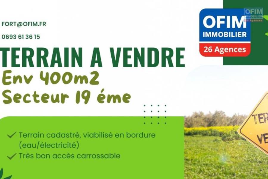 Belle opportunité au Tampon – Terrain d'environ 400 m² au 19ᵉ km, à 3 minute de la RN3 Dans le secteur du 19ᵉ km, ce terrain cadastré présente une belle opportunité pour développer un projet immobilier. Il offre un cadre de vie serein tout en bénéficiant d’un accès facile aux commodités du quartier : commerces, établissements scolaires et services du quotidien. ✅ Atouts : ■Terrain cadastré, viabilisé en bordure (eau/électricité) ■Très bon accès carrossable ■Ensoleillement optimal ■Zonage constructible, parfait pour une maison ou un projet locatif ✅Pour plus d’informations ou pour organiser une visite, Contactez M. FORT Philippe au ☎︎ [coordonnées réservées] - ✉︎ [coordonnées réservées] Honoraires à la charge du vendeur 11A71865, Numéro de mandat: 2362T Tél. commercial: [coordonnées réservées]