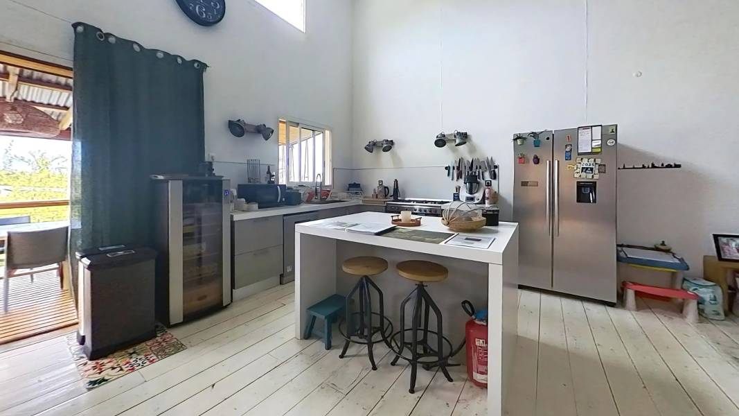 - Niveau 1 : Une varangue spacieuse dotée d'une cheminée avec vue imprenable Océan, donnant accès à un séjour cuisine avec ilot central.