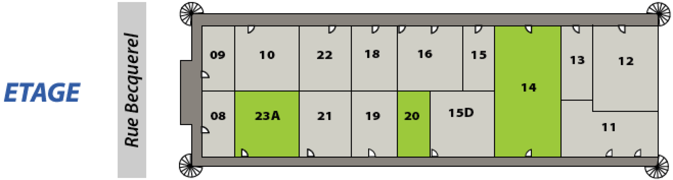 A BAIE MAHAULT, immeuble Coco rue Becquerel, proche de l'ancienne Poste, un local lot 20 au 1er étage 50 m2, 900 euros, 1,80 euross de charges par m2