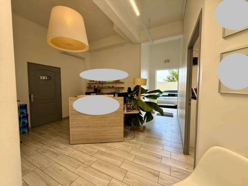 Sur le 2° niveau un espace de 80.14m² composé de 3 bureaux, 1 espace commun, une salle de bains, 1 wc, 1 balcon.