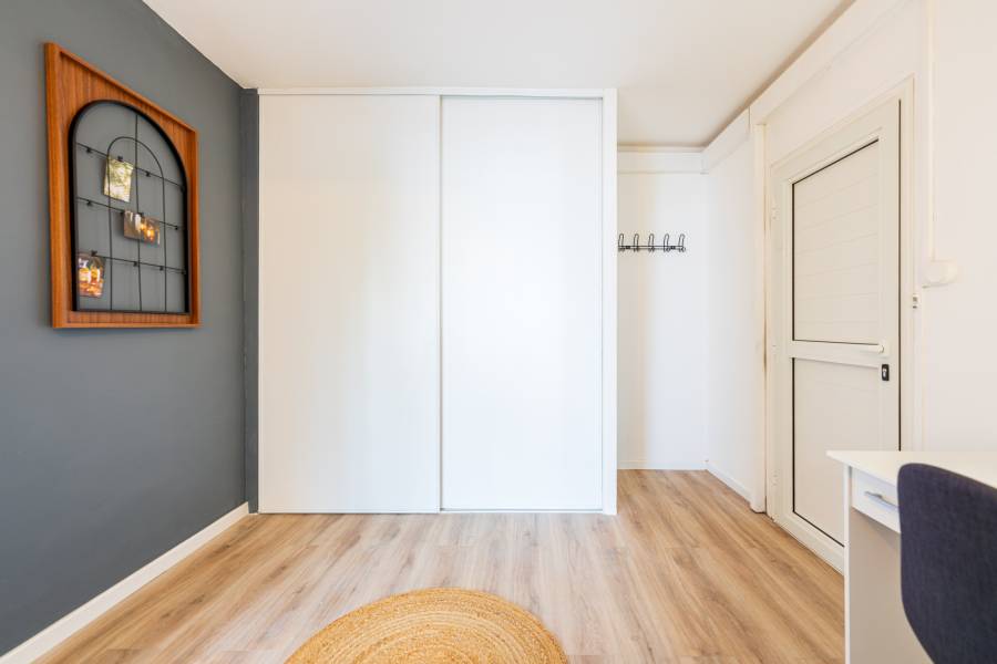 L'appartement comprend 4 pièces principales, offrant une superficie habitable de 76 mètres carrés. Dès que vous entrez, vous serez accueillis par une entrée chaleureuse avec un espace de rangement et un coin bureau.