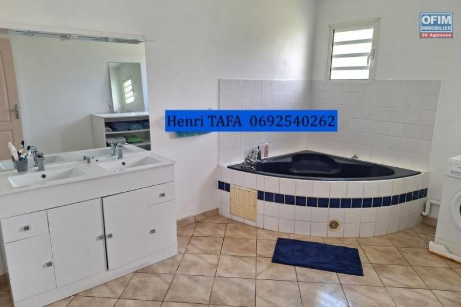 OFIM Saint-Joseph vous propose à la location cette belle et grande villa F6 de 162,65 m2 habitable pour 202,84 m2 de surface au sol, avec sa varangue, son grand jardin arboré et fleuri , en fond d'impasse à Jean-Petit. Située à 8 mn du centre-ville de Saint-Joseph et à 30 mn de Saint-Pierre, en fond d'impasse, au calme avec vue sur la montagne et sans vis à vis, à proximité des écoles et commodités. Vous disposerez sur ce bel espace de vie, au RDC, d'un grand séjour, une salle à manger, deux chambres, une cuisine, une salle de bains, une terrasse, un wc, une volière et un abri de jardin. A l'étage, trois chambres, une salle d'eau, une grande mezzanine et un wc. La villa est clôturée avec vue sur la montagne. Possibilité en location meublée sous conditions. Disponible de suite. Pour toutes visites et contacts, Henri TAFA agent commercial au [coordonnées réservées] / [coordonnées réservées] / [coordonnées réservées] 9A71511, Numéro de mandat: 697J, Honoraires de visite de constitution de dossier et de rédaction de bail: 682 € TTC, Honoraires d'état des lieux: 487 € TTC, total des honoraires à la charge du locataire: 1 169 € TTC Tél. commercial: [coordonnées réservées]