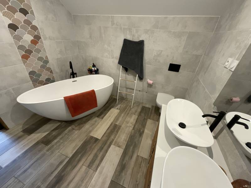 Belle villa meublée F5 de 136 m² avec de trés belles prestations, située dans un quartier calme proche du centre, des écoles et des commerces.