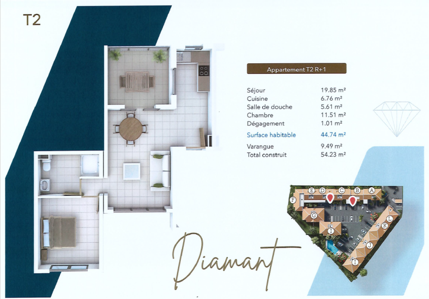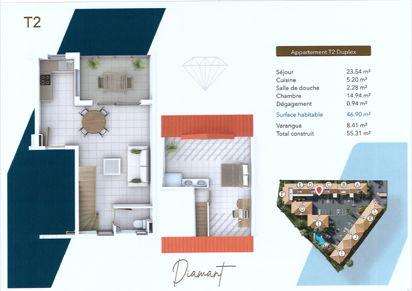 Programme à proximité de la magnifique plage de Bois-Jolan, en plein cœur d'un quartier très résidentiel et recherché, à quelques minutes du Bourg de Sainte Anne, de ses commerces et de toutes ses animations.
