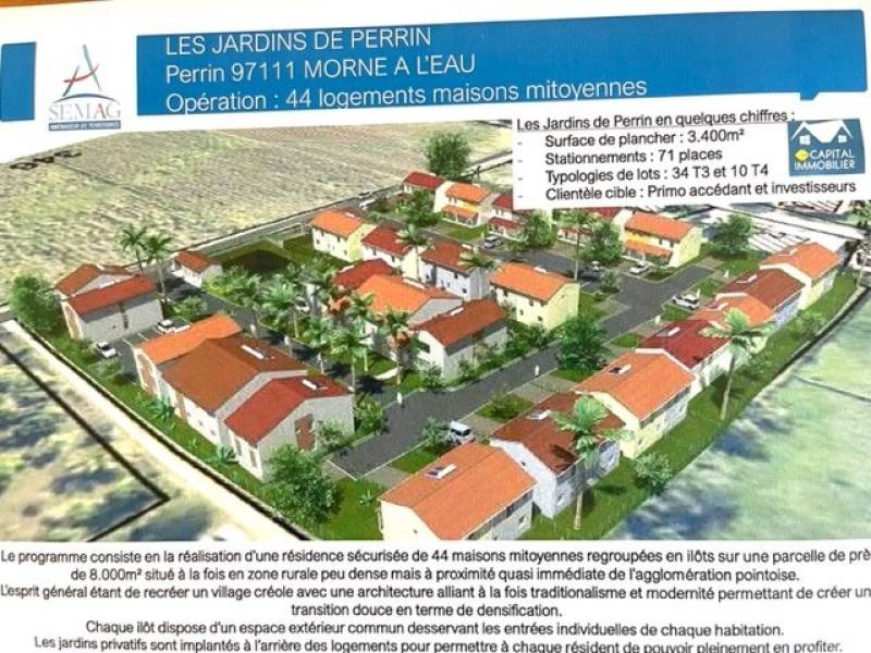 RESIDENCE MODERNE LES JARDINS DE PERRIN BEAU PROGRAMME NEUF DE 44 VILLAS MITOYENNES EN DUPLEX T3 ET T4 A PERRIN MORNE A L EAU SOIT A DEUX PAS DU NOUVEL HOPITAL QUI EST EN COURS DE CONSTUCTION. SOYEZ LES PREMIERS A RESERVER CE NOUVEAU PROGRAMME.À MORNE A L'EAU, en campagne calme. N'hésitez pas à contacter votre agence CAPITAL IMMOBILIER.