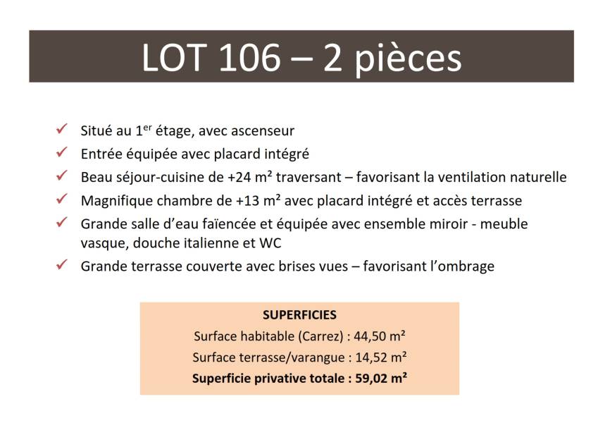 - Surface habitable : 44.5 m²
