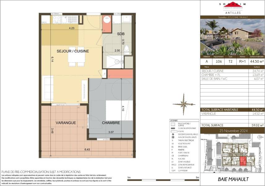 Avec une superficie habitable de 44,50 m2 et une superficie totale de 59,02 m2; ne manquez pas cette opportunité unique d’investir à l'une des adresses les plus prisées de Baie-Mahault, à deux pas de Jarry et de l’aéroport.