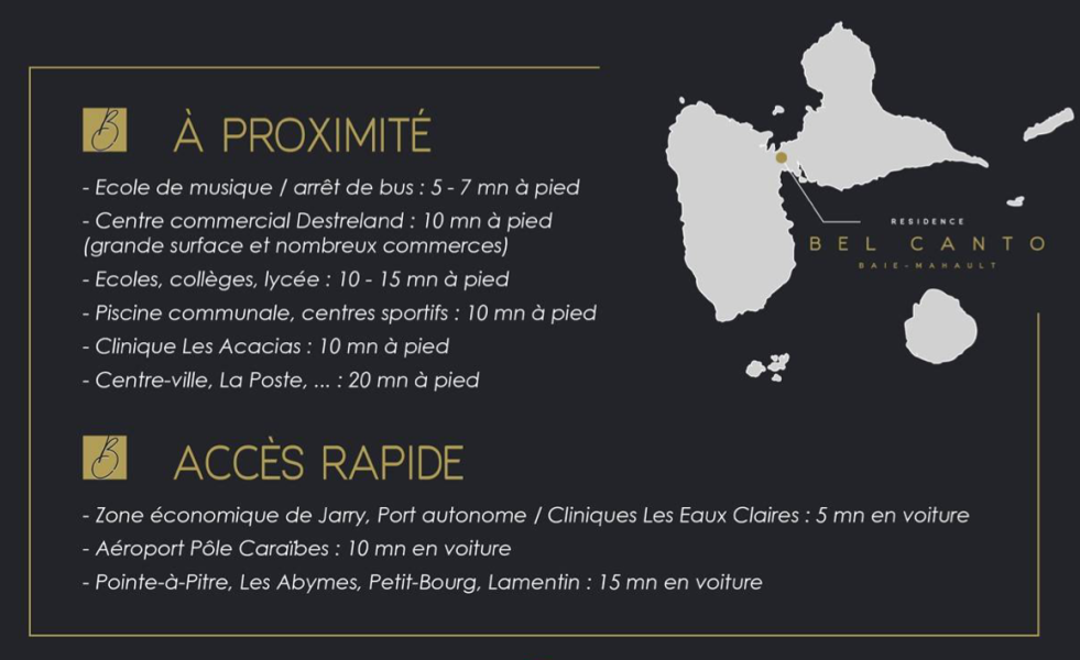 Nous avons le plaisir de vous présenter la toute nouvelle résidence BEL CANTO sur la commune de BAIE-MAHAULT à Destrellan et cet APPARTEMENT 2 pièces où le confort et l'élégance sont réunis pour offrir un cadre de vie idéal à ceux qui auront la chance d'y vivre.