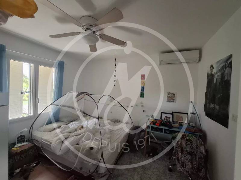 Il est composé d'une entrée, un séjour, une cuisine, deux chambres climatisées, une salle d'eau avec W.C, une coursive, une salle d'eau, un W.C indépendant, une varangue et un jardin d'environ 54m².