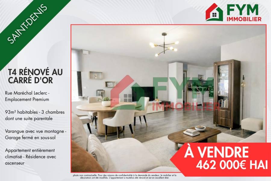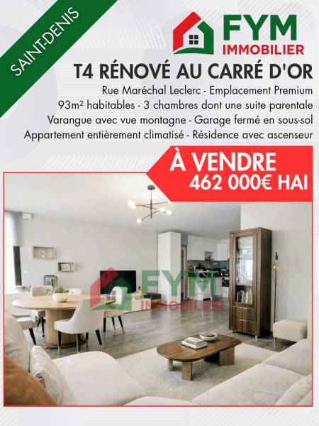 À VENDRE T4 rénové avec garage Carré d’Or Saint-Denis (Rue Maréchal Leclerc)