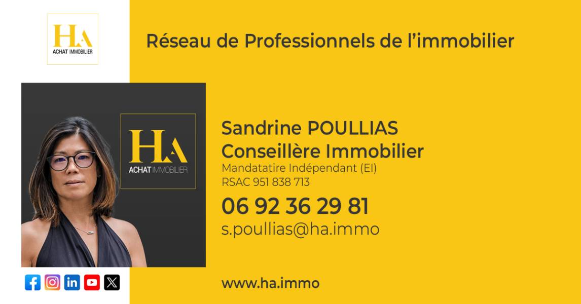 Découvrez la résidence Résidence LENA, en plein coeur de Saint-Denis Nichée en hyper-centre-ville, rue Félix Guyon ,à deux pas de la rue Maréchal Leclerc , la résidence LENA incarne le parfait équilibre entre tranquillité et vie urbaine. Un cadre apaisant, en pleine ville La résidence offre un cadre verdoyant et paisible, idéal pour se détendre après une journée active. Et pourtant, l'essentiel de la ville est à portée de main : commerces, transports, services. tout est là. Des appartements confortables, pensés pour vous Cet appartements T2, avec jardin privatif a été pensé pour répondre aux besoins de chacun. Il dispose d'une douche à l'italienne, d'une cuisine équipée et de la climatisation, pour un confort quotidien optimal. Un investissement serein Grâce à sa localisation privilégiée et à la qualité des prestations, la résidence LENA s'inscrit dans les dispositifs en vigueur pour les programmes neufs. un avantage non négligeable pour les primo-accédants ou les investisseurs. Prix: 410 000 euros TTC HAI Honoraires charge vendeur Mandat n° Pour plus d'informations, vous pouvez contacter : Sandrine POULLIAS Conseillère en immobilier HA IMMOBILIER [coordonnées réservées] [coordonnées réservées] Agent Commercial (EI) immatriculée au RSAC de Saint-Pierre de La Réunion n° 951838713 HA IMMOBILIER 4 rue Franck Camille Cadet ZIE Les Sables 97427 L'Étang-Salé Carte professionnelle Transaction n° CPI 9742 2020 000 004 5143, délivrée par la CCI de La Réunion Assurance RCP : MMA IARD, 14 boulevard Marie et Alexandre Oyon, 72030 Le Mans Cedex 9 Plus d'informations sur www.ha.immo Les informations sur les risques auxquels ce bien est exposé sont disponibles sur : www.georisques.gouv.fr SANDRINE POULLIAS (EI) Agent Commercial - Numéro RSAC : 951838713 - Saint Denis de la Réunion.