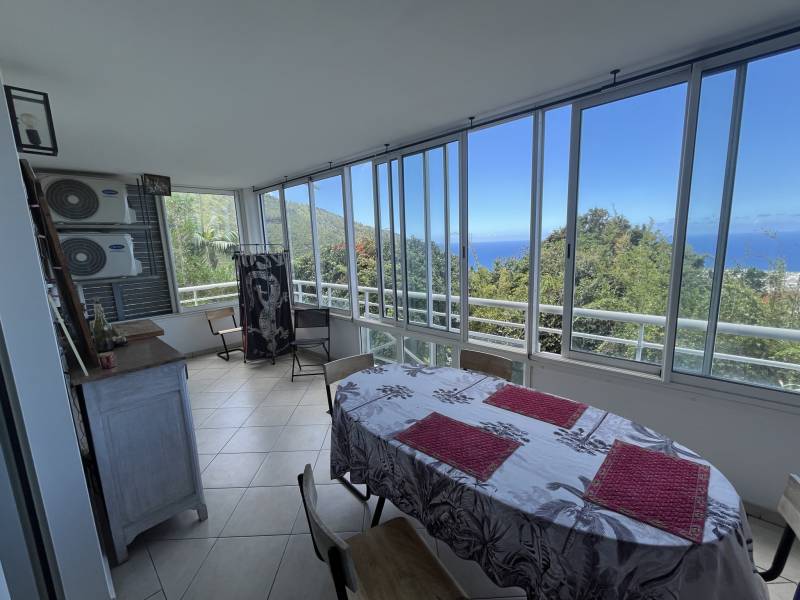 Véranda offrant une vue dégagée sur la mer et les environs.