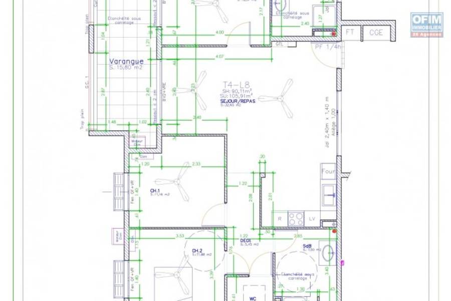 A VENDRE APPARTEMENT F4 DE 101.51 M2 AU CENTRE VILLE DE SAINT DENIS