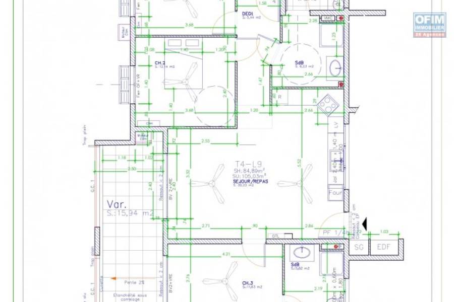 A VENDRE APPARTEMENT F4 DE 103.68 M2 AU CENTRE VILLE DE SAINT DENIS