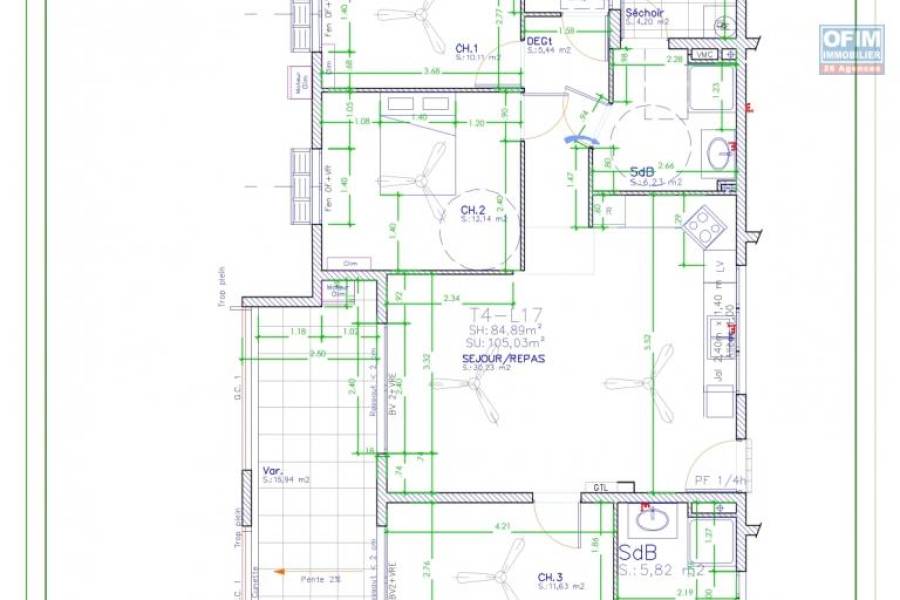 A VENDRE APPARTEMENT F4 DE 103.16 M2 AU CENTRE VILLE DE SAINT DENIS