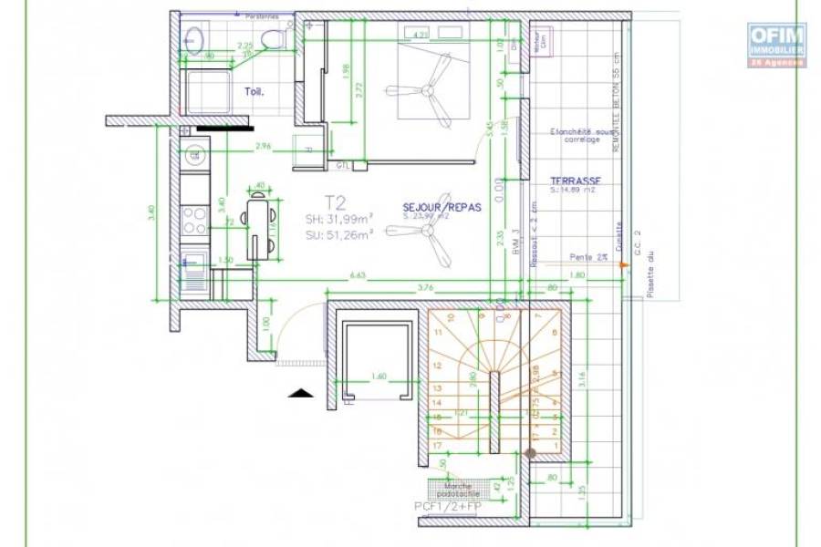 A VENDRE APPARTEMENT F2 DE 57.46 M2 AU CENTRE VILLE DE SAINT DENIS