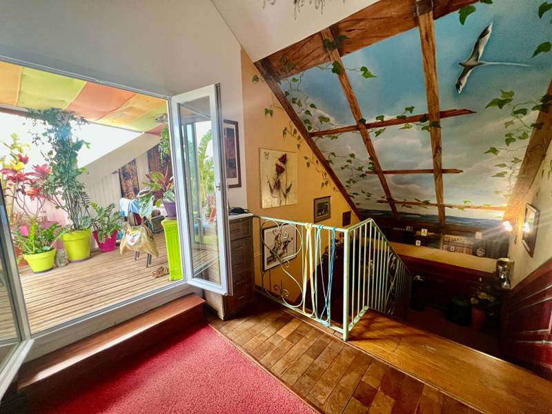 L'agence PRMI vous propose à la vente un bien rare et recherché, idéalement situé au coeur de l'Hermitage, dans le quartier le plus prisé de Saint-Gilles-les-Bains. A seulement quelques pas du lagon et de toutes les commodités du quartier ? boulangerie, supermarché, pharmacie, restaurants ? ce loft niché au dernier étage d'une résidence calme offre un cadre de vie unique sur la côte Ouest. Cet appartement atypique séduit par ses volumes généreux et son agencement original en 2 espaces distincts, reliés par une varangue et une terrasse propices à la détente. Avec plus de 120 m² habitables (loi Carrez) et 180 m² au sol, il combine confort, lumière et fonctionnalité dans une atmosphère chaleureuse et décontractée. Le premier espace comprend un vaste séjour traversant à la belle hauteur sous plafond, une salle à manger conviviale, une cuisine équipée, une salle d'eau avec WC, un dressing, ainsi qu'une chambre en mezzanine, parfaite pour un coin nuit intimiste. Le second espace accueille un bureau, un grand dressing et une suite parentale dotée de sa propre salle de bains et de WC privatifs. Ce bien rare sur le secteur est vendu avec 2 places de parking sécurisées, un atout non négligeable dans ce quartier très recherché. Pour plus de renseignements ou pour organiser une visite, contactez Jennifer BERTHELOT au [coordonnées réservées] ou par email à [coordonnées réservées] Les informations sur les risques auxquels ce bien est exposé sont disponibles sur le site Géorisques : www.georisques.gouv.fr (5.00 % honoraires TTC à la charge de l'acquéreur.)