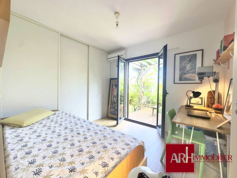 ARH Immobilier vous présente à la vente un bel appartement T3 de 65 m² plus une varangue de 20m² environ, niché dans un écrin de verdure. Construit en 2010, ce bien est composé d'une cuisine aménagée et équipée ouverte sur le salon séjour, 2 chambres avec placard de rangement et climatisation, une salle de bain et des WC indépendants.