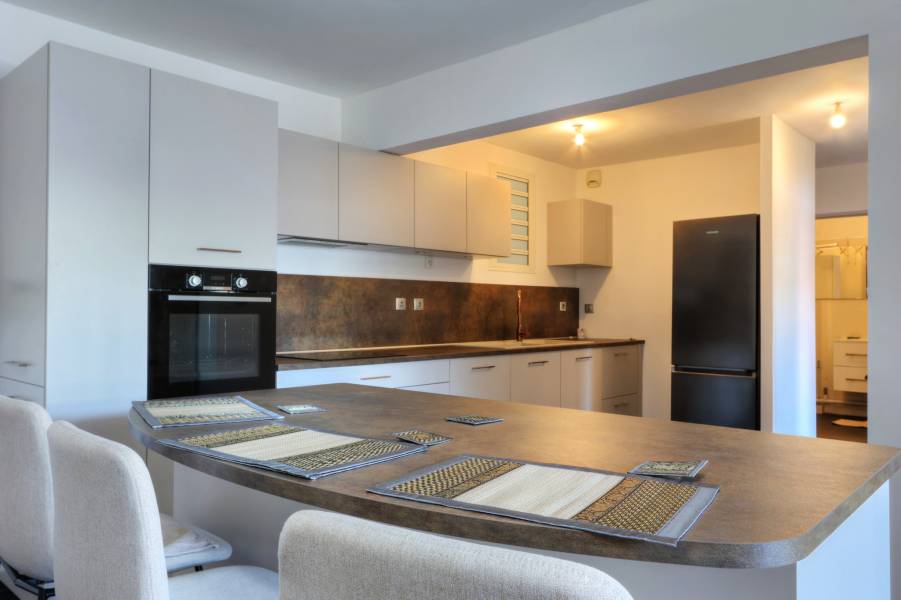 Il se compose d’une spacieuse pièce de vie de plus de 40 m2, comprenant une cuisine neuve entièrement équipée ouverte sur le séjour, donnant accès à une agréable terrasse de 16 m2,