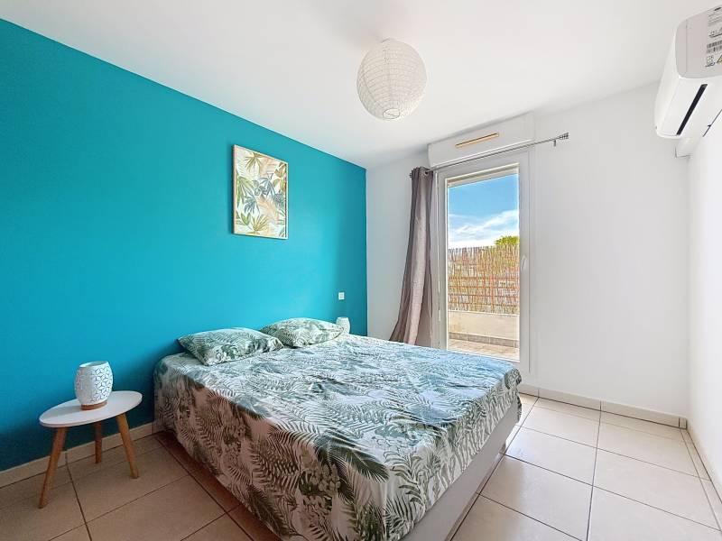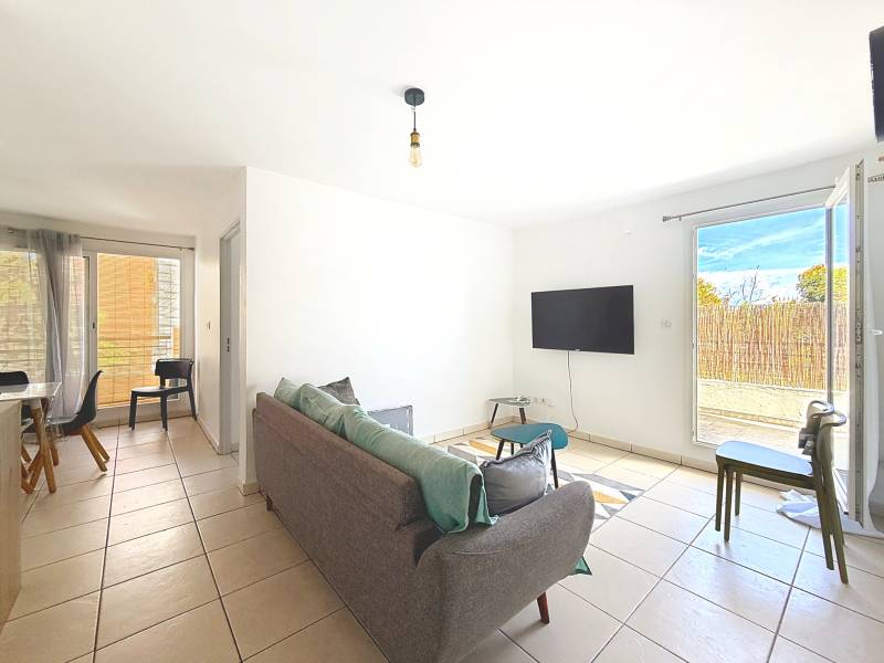 Vendu meublé et équipé, idéal pour un primo accédant ou un couple, l’agencement est optimal : deux chambres, terrasses, parking
