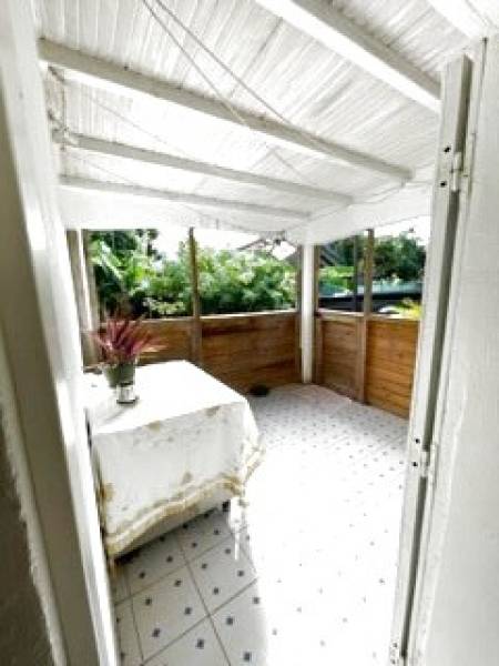 Cette propriété située dans le bourg comprend un terrain de 1418 m2 et deux maisons. Une maison créole de type F3 avec un séjour coin cuisine trois pièces, deux salles d'eau et deux wc, le tout ayant une surface habitable de 52 m2 environ et une terrasse avant de 13 m2 environ. L'autre maison a une surface de 42 m2 environ, elle comprend une terrasse de 8,95 m2, deux chambres, une cuisine salle à manger, un dégagement, un salle d'eau et un wc séparé. Pour cette deuxième maison , une extension est prévue d'envion 40 m2, travaux commencés non achevés.