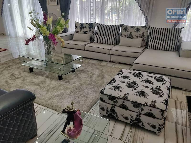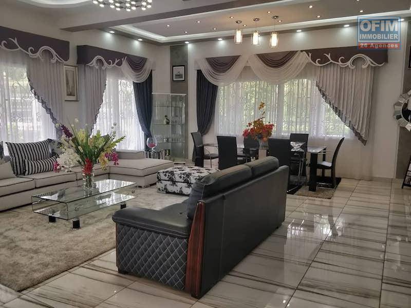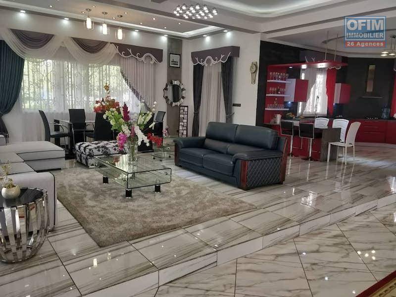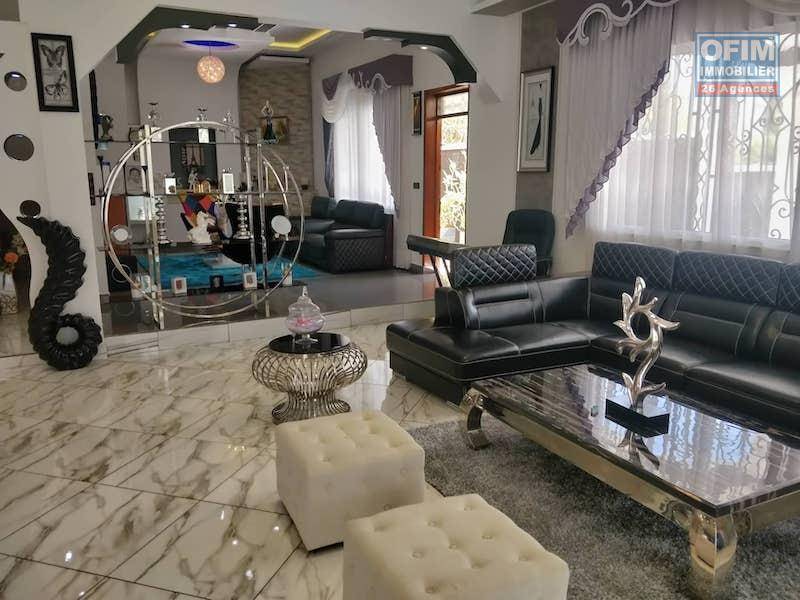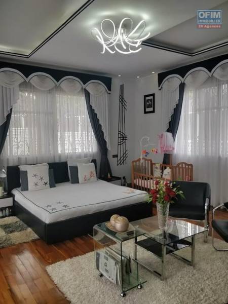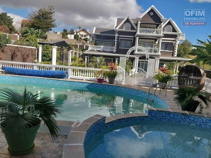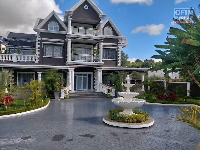 Ofim met en vente Une grande villa F8 de standing avec piscine en R+2 avec 700 m2 de surface habitable environ dans une propreté de 4100 m2 à ambohibao, au Rez de chaussée un très grand living de 200 M2 environ avec salle à manger et grande cuisine ouverte de 30 M2 , toilette visiteur. Au 1 ère étage comprend une suite parentale et sa salle de bain privative , dressing , 2 chambres avec salle de bain attenant et dressing, à noter que les chambres disposent toutes d'une terrasse ; 2 éme étage : 2 chambre , une salle de cinema,1 salle de sport, 1 salle de réunion ou bibliothèque,petit salon. A l'extérieur dépendance gardien , une grande jardin arboré, terrain de basket et boulodrome, une petite villa F2 pour les invités de passage ,un chenil,une piscine ,cuisine externe, garage pour 3 voiture , parking pour 8 voitures ;Elle est équipée d' un réservoir d'eau de 10 000 litres et d'un groupe électrogène en cas de coupure d'eau et d'électricité. Environnement calme, bien sécurisé, accès facile.
