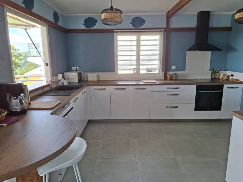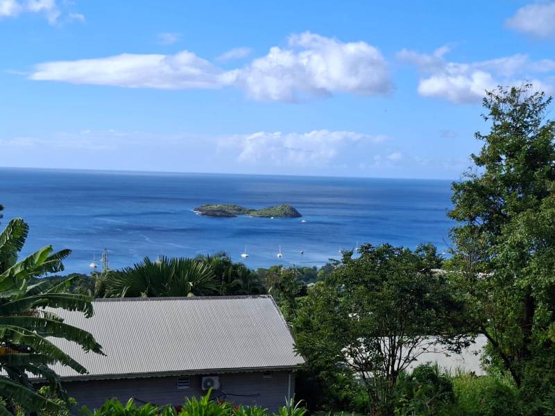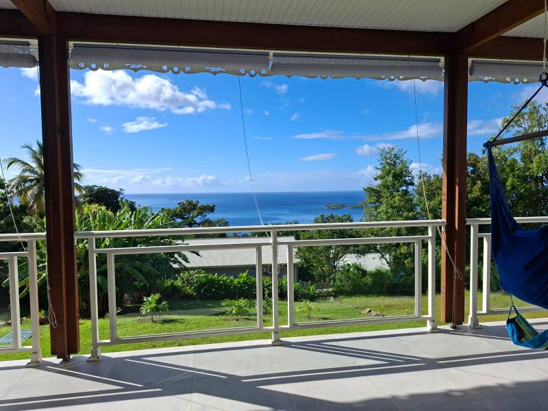 Une grande terrasse couverte de 42 m2, parfaite pour les repas et la détente, face à un panorama exceptionnel sur les Ilets Pigeon à Malendure.2 places stationnements privés.