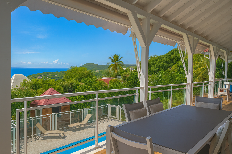 Terrasse: Une immense terrasse de 56 m2 offrant un cadre idyllique pour vos repas et apéritifs face au coucher de soleil sur l'horizon caribéen.