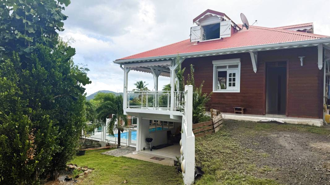 Sur la commune de DESHAIES, cet ensemble immobilier est intéressant.Il comprend une VILLA PRINCIPALE (haut de villa de plain pied) de 110 m2 :
