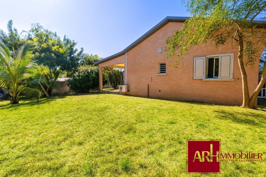 Cette maison vous propose un séjour ouvert sur une vaste varangue et un beau jardin, au sein duquel l'installation d'une piscine peut se faire aisément ;