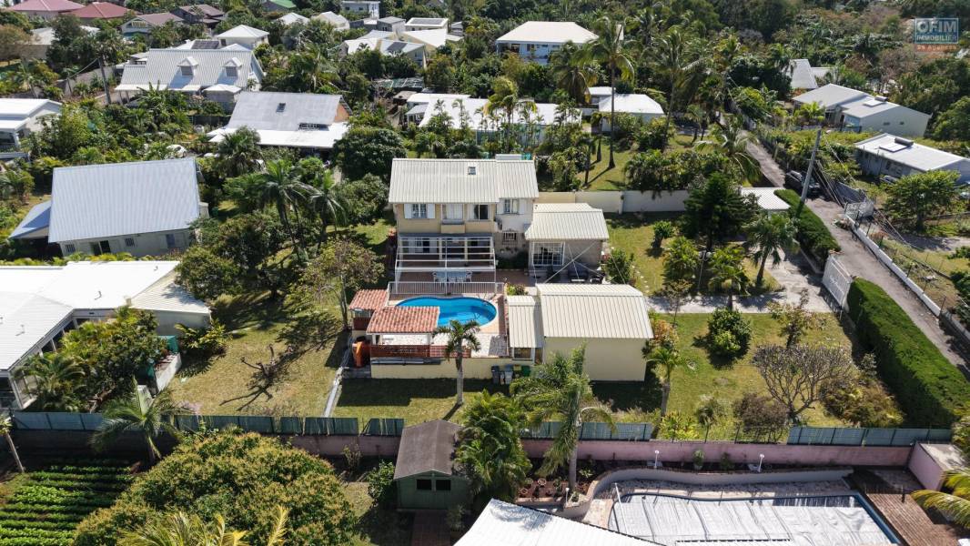 Belle propriété F5/6 avec garages et piscine, idéalement située en hyper centre d'Etang Salé Les Hauts, en impasse, implantée sur un terrain plat de 1515 m² sans vis à vis.