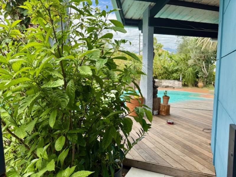 Deux varangues viennent prolonger l’espace de vie, dont l’une donnant directement sur la piscine, parfaite pour profiter d’instants de détente.