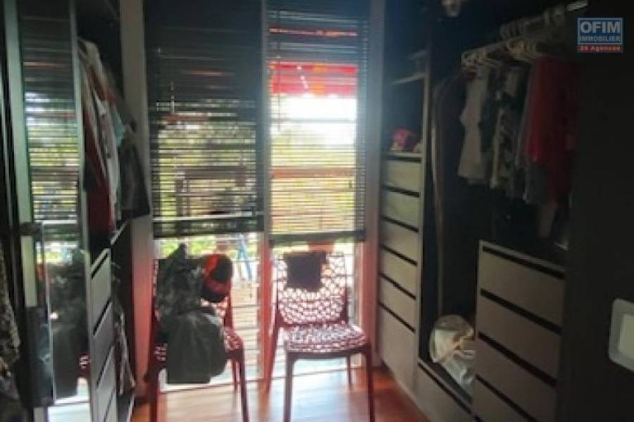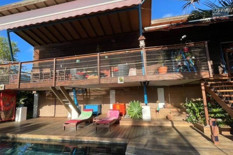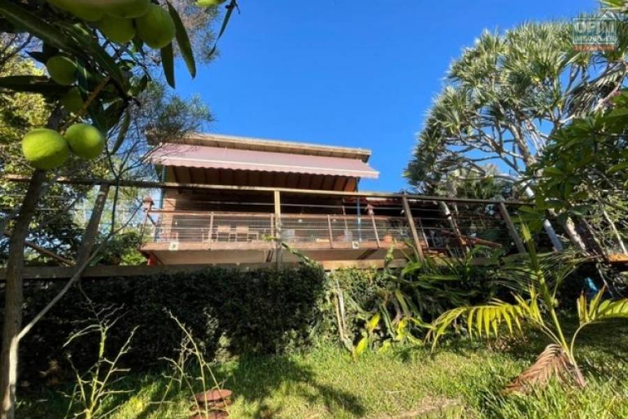 Ofim vous propose à la vente cette Villa d'architecte T4 plus studio indépendant en plein coeur de La Montagne à proximité de tous les commerces, écoles... Ce bien de 135m2, au calme niché dans un écrin de verdure (terrain 1052m2 arboré, arbres fruitiers) vous séduira forcement . Maison traversante tres bien aérée . RDC: 1 grand salon salle à manger (environ 33m2) donnant sur un belle varangue (49m2) avec vue mer, une cuisine ouverte avec un cellier, 1 buanderie, 1 patio avec rangements, 1 chambre parentale avec une salle de douche, un dressing et une douche extérieur, piscine et jardin . ETAGE: 2 belles chambres (environ 13m2)., une salle de douche . Dans le jardin, un bungalow comprenant un studio avec lavabo, douche et wc. . Les plus : nombreux rangements, abris voiture/ moto..., places de stationnement, panneaux photovoltaïques, piscine chauffée (capteurs solaire), espace détente au bord de la piscine, magnifique jardin arboré d'arbres fruitiers et de plantes endémiques . Relié au tout a l'égout. N'hésitez pas à me contacter au [coordonnées réservées] (Karine) pour visiter et découvrir cet havre de paix dans la verdure.. Taxe foncière: 3241€ PRIX de vente: 560 000€ Honoraires à la charge du vendeur 22A71468, Numéro de mandat: 491 Tél. commercial: [coordonnées réservées]