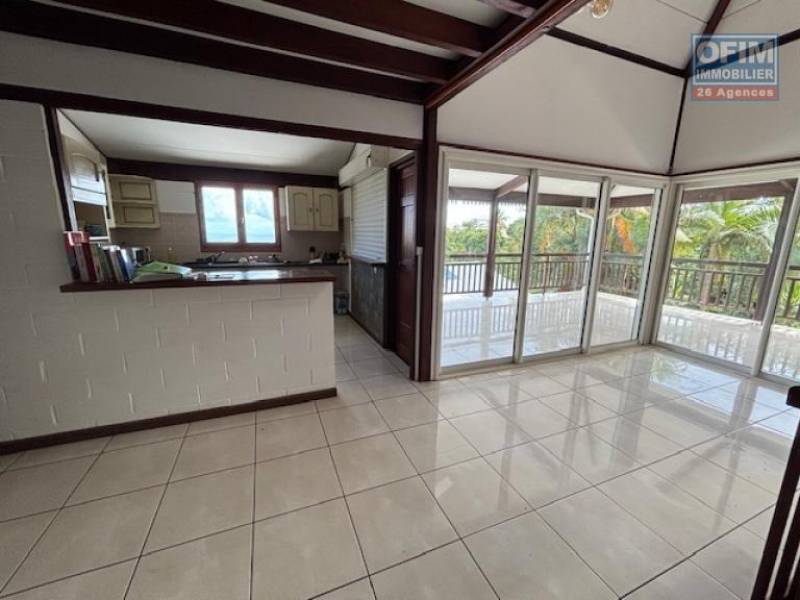 R.d.C = 3 chambres dont une parentale avec salle de douche attenante, un salon/salle à manger donnant sur une belle varangue avec vue dégagée, une mezzanine, une salle de bain, une cuisine séparée semi ouverte.