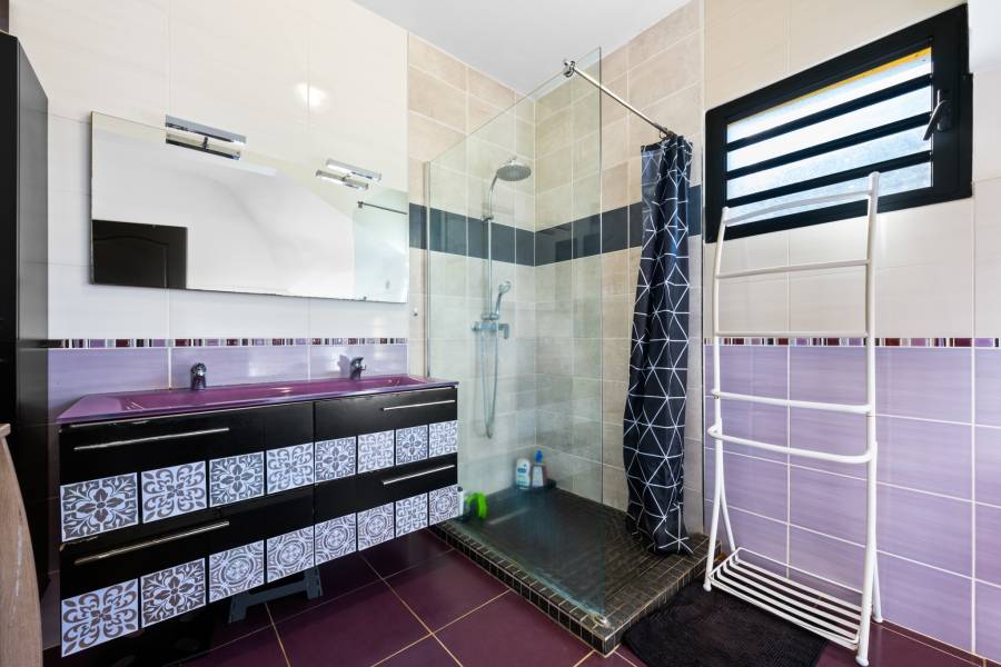 - Au RDC une cuisine ouverte sur un séjour, 2 chambres, une salle d'eau avec WC, une buanderie.
