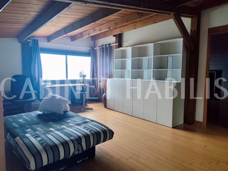 À l’étage, une grande chambre de 21 m2 divisable en deux, une salle d’eau et une mezzanine viennent compléter l’espace nuit.