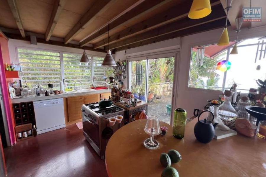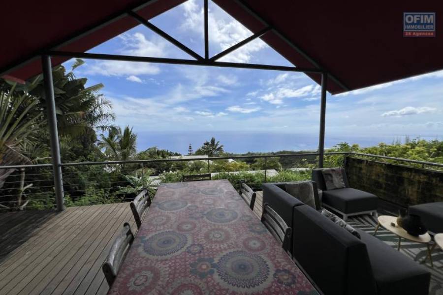 Vous recherchez une vue imprenable, proche du centre ville des Avirons, Ofim Etang Salé vous propose à la vente à 320 m d'altitude cette maison d'architecte F6 terminée en 2004 sur deux niveaux plus une dépendance F2/3 et piscine, implantée sur 1038 m2 de terrain. La maison se compose au RDC d'un grand séjour/salon/cuisine/varangue (109 m2), cellier et WC et en RDJ trois chambres (9,90, 13,35 et 13,75 m2 vue mer), une suite parentale avec dressing 21,20 m2 et SDB, 2 SDB avec WC, une pièce bibliothèque/médiathèque (21,60 m2), une buanderie, un patio, le tout pour 220 m2 habitables, à l'extérieur, une piscine (couloir de nage 2x10), un caillebotis, une maison F3 composée d'une pièce principale, séjour/espace cuisine, une chambre, SDE et WC de 52 m2 et varangue de 17,20 m2. Vue mer imprenable de la maison principale, deux portails d'entrée. quelques travaux de réfection à prévoir : étanchéité varangue, gouttières, plomberie à divers endroit, caillebotis piscine, fosse septique, aménagement intérieur de la dépendance qui peut tout à fait être une seconde habitation, sans la moindre nuisance avec la maison principale. Il y a chauffe eau solaire et plusieurs places de parking pour chaque habitations. Commission d'agence OFIM charge vendeur. Pour tous renseignements ou visites, contactez François HART (Agent commercial) [coordonnées réservées] ou [coordonnées réservées] Honoraires à la charge du vendeur 8A70940, Numéro de mandat: 2304ESH Tél. commercial: [coordonnées réservées]
