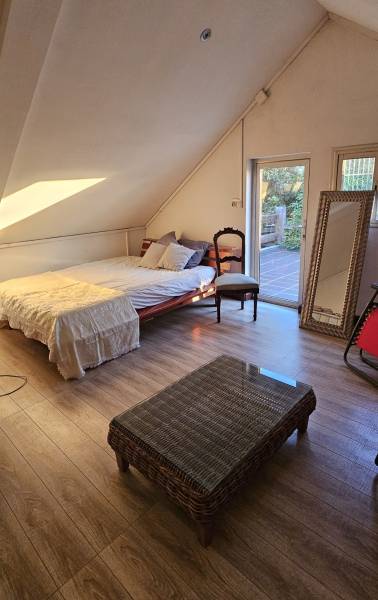 A l'étage : - d'une très grande chambre de 18 m2 avec un WC, (surface utile 33m2) - une grande chambre de 14 m2 (surface utile 28m2) avec une terrasse de 25 m2