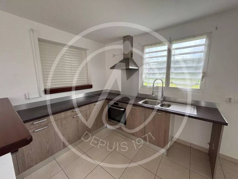 Idéalement située à Petit-Bourg, à 5 minutes de la zone industrielle de Jarry, cette maison individuelle de plain-pied propose un grand séjour lumineux ouvert sur une cuisine équipée, avec accès à une galerie couverte par de larges baies vitrées et volets roulants.